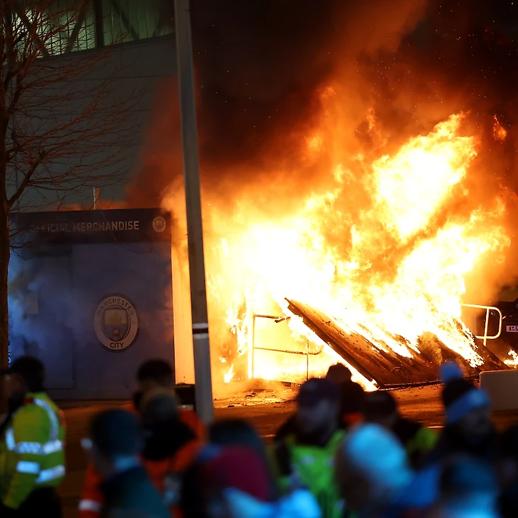 За два часа до начала встречи возле «Этихада» вспыхнул пожар.