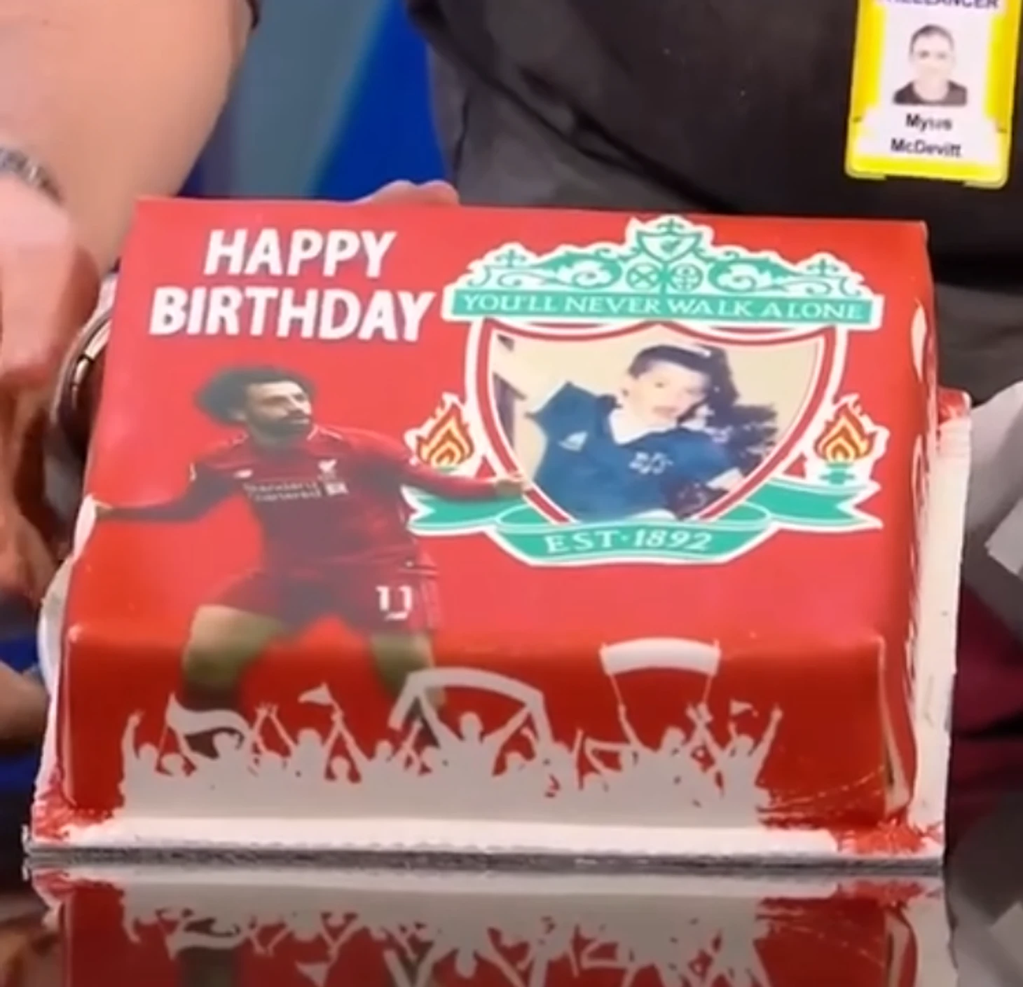 Эксперты не могли оставить Джейми без подарка: под конец эфира в студию вынесли оригинальный торт – в эмблеме «Ливерпуля» расположили фото маленького Карры в футболке «Эвертона», а рядом добавили Мо Салаха!