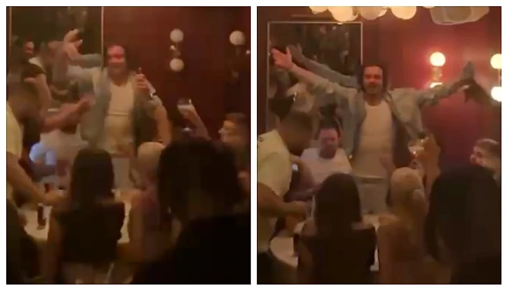 Игрок сборной Англии всю ночь танцевал с друзьями, пока его подбадривали модели в переполненном ночном клубе.
