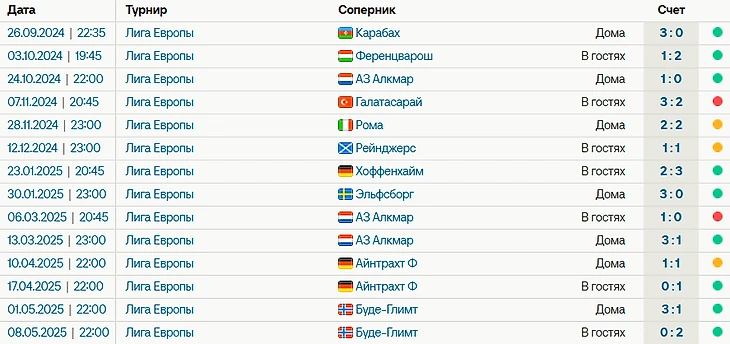 Команда Аморима дошла до финала, играя с «Твенте», «Порту», «Фенербахче», «ПАОК», «Буде-Глимт», «Викторией Пльзень», «Рейнджерс», «ФКСБ», «Сосьедадом», «Лионом» и «Атлетиком». Общая стоимость составов этих команд − 625 млн евро.
