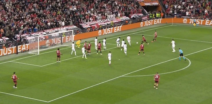 «Тоттенхэм» и «Манчестер Юнайтед» столкнулись в финале Лиги Европы в Бильбао. Один из самых опасных моментов первой половины встречи – удар Амада Диалло на 16-й минуте.
