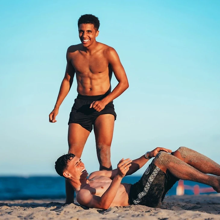 Болельщики заметили футболистов на пляже и, конечно, запечатлели этот момент.