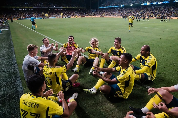 Немец помчался к флажку отмечать победный мяч, к нему присоединились все одноклубники. «Нэшвилл» всей командой повторил празднование погибшего Диогу Жоты.