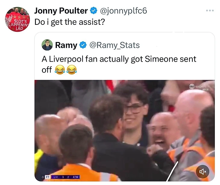 Поултер репостнул видео удаления Симеоне, подписав: «А на меня ассист запишут?»