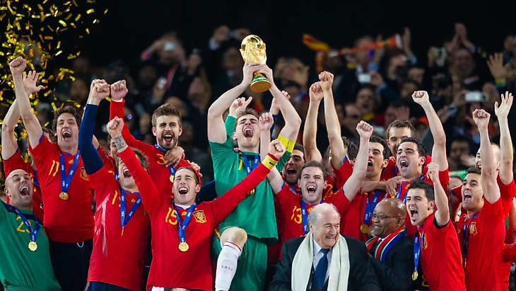 2010 год. Испания выделялась командной игрой, а не персональной. При этом это, вероятно, величайшая команда на уровне сборных в истории. Касильяс, Рамос, Пуйоль, Пике, Капдевилья, Хаби Алонсо, Бускетс, Хави, Иньеста, Фабрегас, Силва, Вилья. Фух, дайте передышку. Торрес, Мата, Педро, Марчена, Альбиоль, Арбелоа, Навас, Вальдес, Рейна, Льоренте. Тренер Дель Боске. Фух, до сих пор без подсказок назову всю заявку на тот Чемпионат. Эталон команды. Каждый великий, каждый на пике карьеры, а один уроженец Фуэнтеальбильи, похожий на приведение Каспера, кое-где в Испании даже канонизирован. Выделить кого-то одного невозможно. Поэтому ни лучшим игроком турнира, ни вторым лучшим ни один из испанцев признан не был. Можно спорить насчёт Золотого Мяча Уэсли Снайдера, ставшего вице-Чемпионом Мира и победителем всех клубных трофеев в году. Но он не стал Чемпионом - это раз. Плюс в этот год действовало «Замечание 4», поэтому у Снайдера не было шансов. Удивительно, но никому из доминировавшей многие годы испанской команды судьба так и не выдала Золотой Мяч. Хотя должна была. Но это тема другой статьи.