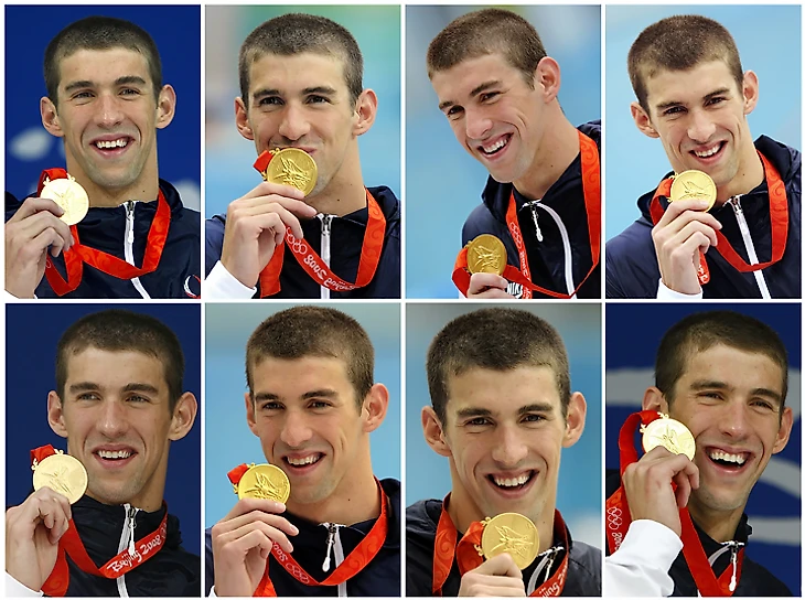 Майкл Фелпс стал сенсацией плавания, когда ему было 15. Он квалифицировался на Олимпиаду в Сиднее, а через несколько месяцев установил мировой рекорд на дистанции 200 метров баттерфляем (самый молодой пловец-рекордсмен в истории). На Играх-2004 он взял шесть золотых медалей и две бронзовые. На Играх-2008 – восемь золотых медалей в восьми дисциплинах и установил семь мировых рекордов.