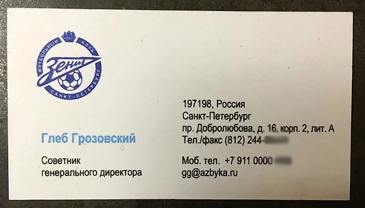 Грозовская прислала мне фотографию визитки, которая, по ее словам, была у Глеба, когда он был духовником клуба.
