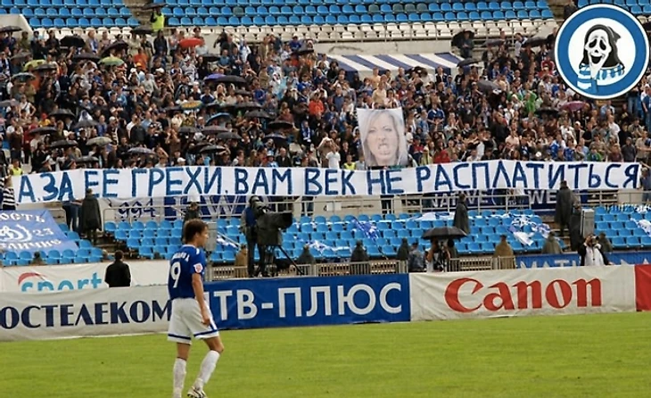 При следующей встрече фанаты «Динамо» напомнили, в каком городе родилась Ксения Собчак – в тот момент суперзвезда программы «Дом-2»: