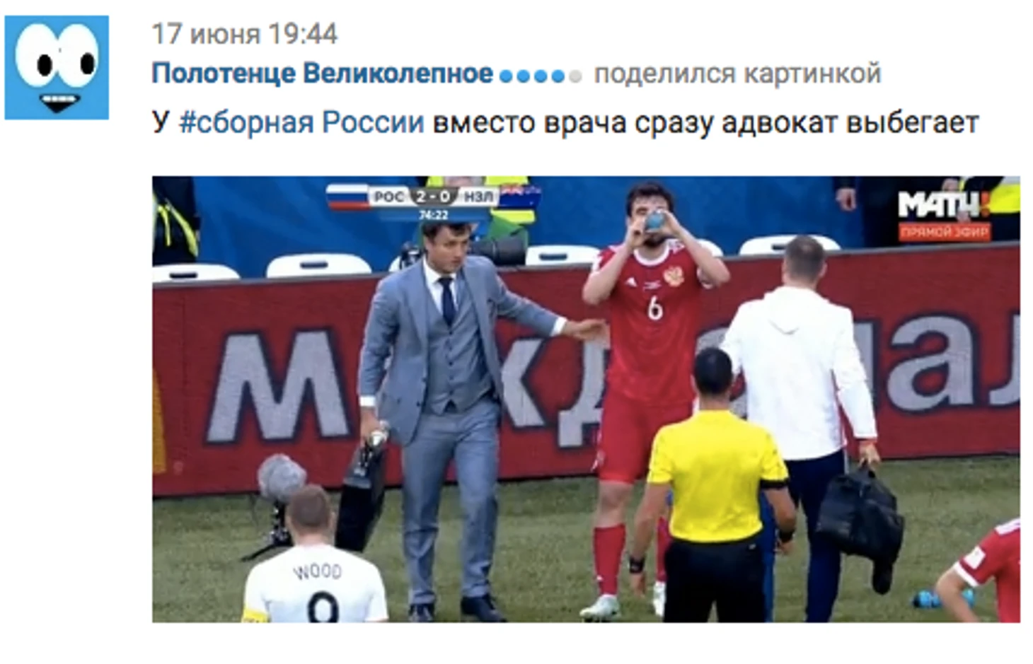 Кстати, о Безуглове. Вы наверняка видели лучший статус субботы. Многих и правда удивило, когда врач сборной вышел на поле в костюме.
