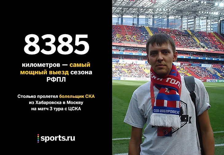 Александр Шушнов живет в Хабаровске, работает менеджером по развитию сети магазинов, торгующих снегоходами, квадроциклами, катерами и лодками. Он болеет за «СКА-Хабаровск» и в этом сезоне он пока единственный фанат клуба, который слетал на выезд из Хабаровска – в Москву, на матч с ЦСКА.