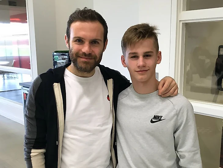 В команде 2004 года все похожи друг на друга – невысокие, но плотные, техничные. Меня хорошо приняли, я почувствовал, что не чужой. Я как будто не в первый раз играл здесь. На базе я видел Хуана Мату. Мы сидели в кабинете, а главная команда в этот момент обедала. Мне сказали: ты можешь подойти к нему, сфотографироваться. Я подошел, он спросил, как дела, обнял меня, мы сфотографировались. И он на футболке расписался.