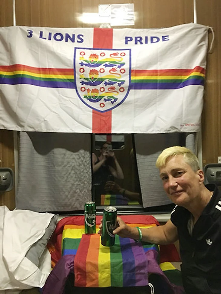 В Нижнем Новгороде мы прошли на стадион без проблем. Стюарды даже помогли нам – сфотографировали нас, когда мы вешали баннер. Но потом его сняли и мы были в замешательстве. Стюарды рассказали: наш босс попросил снять его. Мы позвали босса, он пришел и сказал: «На стадионе эти цвета запрещены». Наверное, пропустил тренинги? Как я понимаю, их всех инструктировали на этот счет – что все меньшинства должны чувствовать, что им рады. Видимо, опять все дело было в законе о гей-пропаганде. Я сказала ему: «Как я понимаю, ФИФА и федерация футбола России не против радужных символов. Можете проверить?». Он поговорил с начальством и сказал: «Вернем баннер через две минуты». Вернули через десять. Мы снова его повесили и этот баннер было видно в трансляции, когда забил Харри Кейн. Нам повезло с местом – прямо у ворот, флаг показали по телевизору, его видели ЛГБТ-болельщики по всему миру. Мы получили кучу сообщений поддержки.