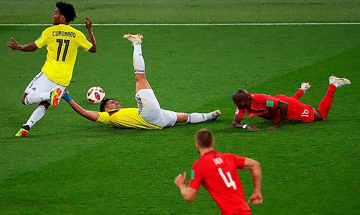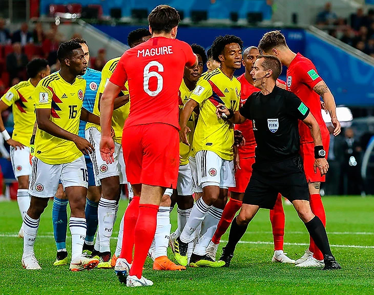 Футбол в матче Англия – Колумбия закончился, когда американский рефери Марк Гейгер назначил пенальти в ворота Оспины. Колумбийцы сошли с ума еще до удара – когда вы последний раз видели, чтобы в матче такого уровня футболисты пытались раскопать 11-метровую отметку, чтобы пенальтисту соперника было сложнее бить?