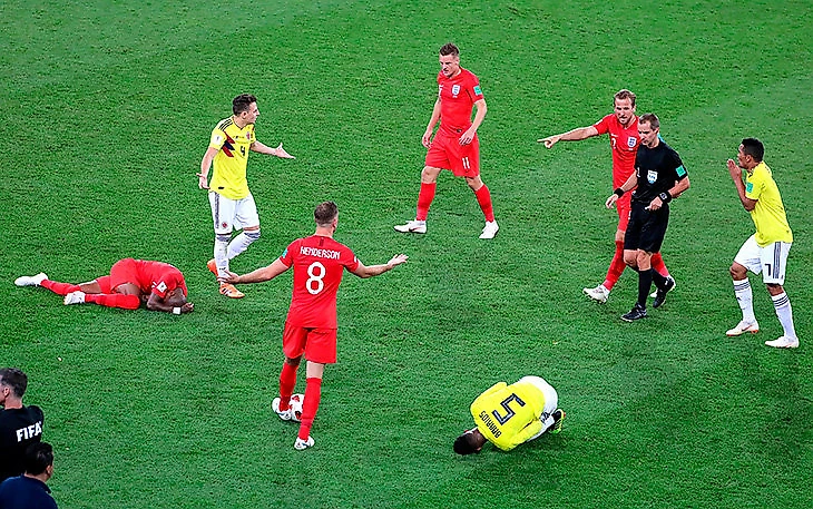 На пресс-конференции Пекерман сказал: в игре было много пауз, и это помешало Колумбии. Неправда: они сами постоянно и сознательно тормозили игру. Гарет Саутгейт заявил: «Мы действовали с честью и достоинством, а падали, когда на нас фолили». Тоже ерунда: какая честь и достоинство, когда Эшли Янг стирал исчезающий спрей с газона, чтобы подвинуть мяч при штрафном на полметра?