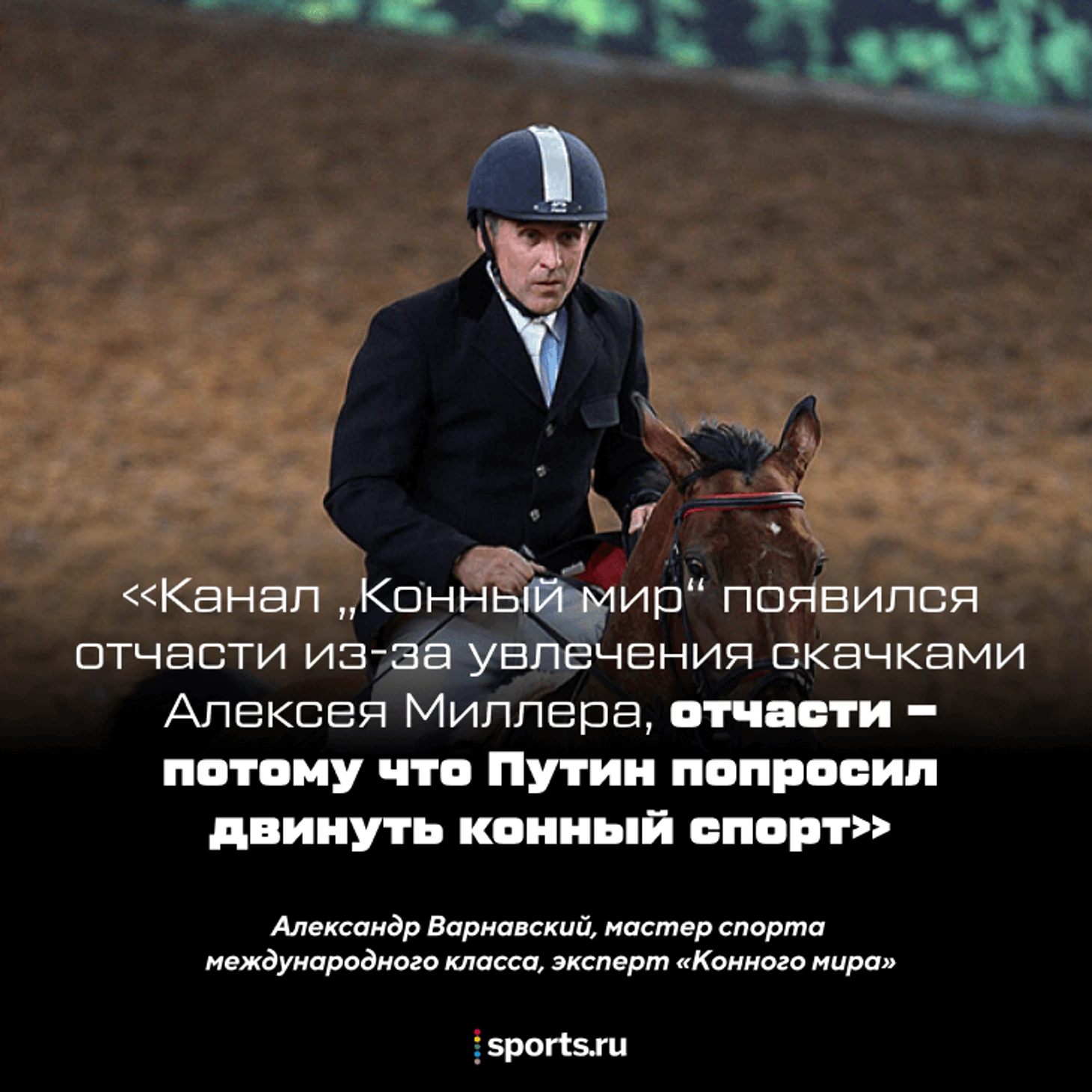 «Канал появился отчасти из-за увлечения Миллера скачками, а отчасти – из-за того, что Путин сказал: «Ребята, вы двиньте немножко конный спорт», – говорит Александр Варнавский. – Канал хороший, но там 70% скачки, 20% реклама, только 10% – тот конный спорт, что на Олимпиадах».