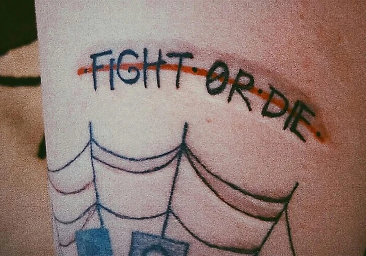 У нее имеется татуировка «Fight or Die» (борись или умри) на английском.