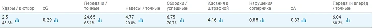 - В целом неплохое соотношение попыток/реализации обводок 1 в 1 за 90 минут, но есть куда расти.
