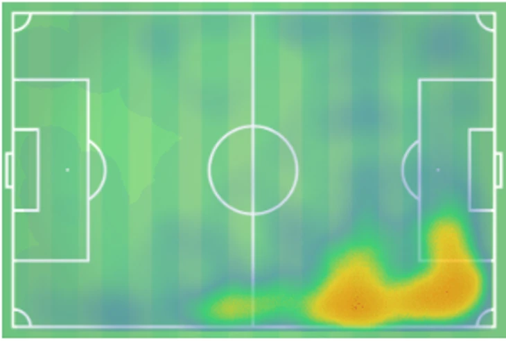 Так выглядит тепловая карта перемещений игрока сезон 2017-2018.