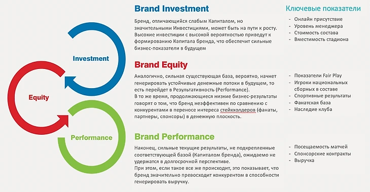 На этом этапе бренд оценивается по ряду показателей, сгруппированных в 3 блока: Инвестиции в бренд (Brand Investment), Капитал бренда (Brand Equity) и Результативность бренда (Brand Performance). Для наглядности я адаптировал визуализацию от Brand Finance: