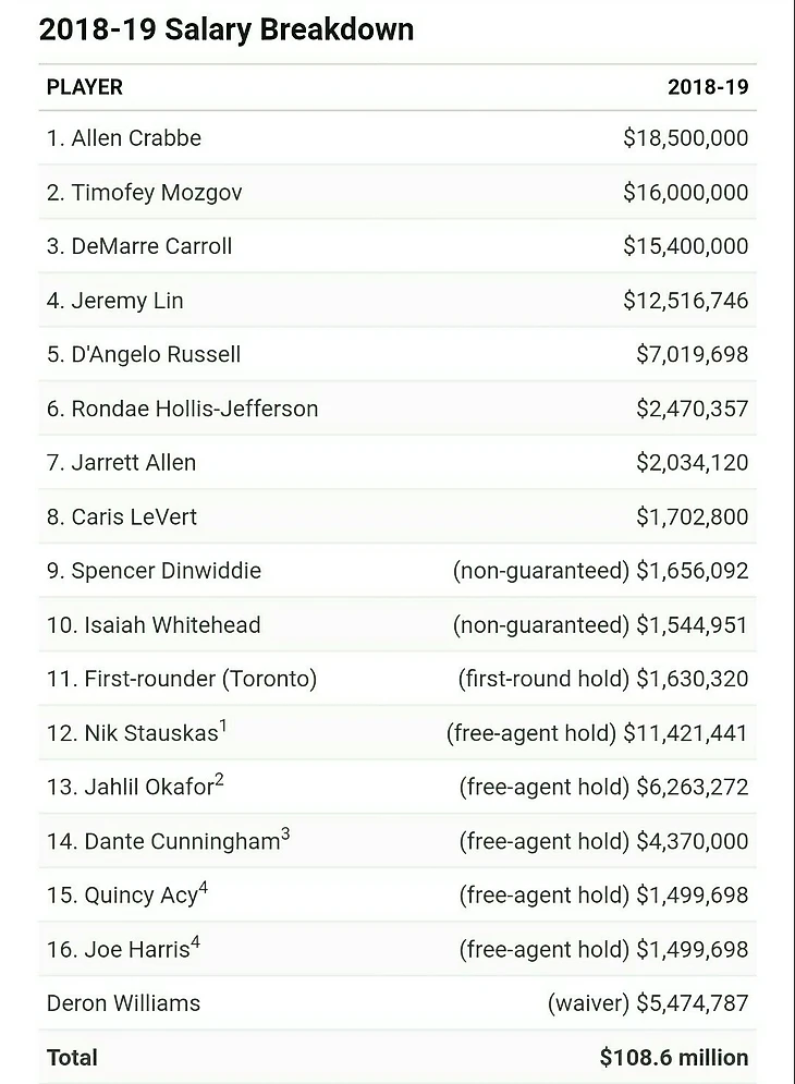У «Нетс» есть 8 кандидатов на продление контрактов, но скорее всего, речь об этом будет идти только в переговорах с РХД (см. выше), Динвидди (см. выше) и Расселлом (кэп-холд в 2019 – 21 миллион).