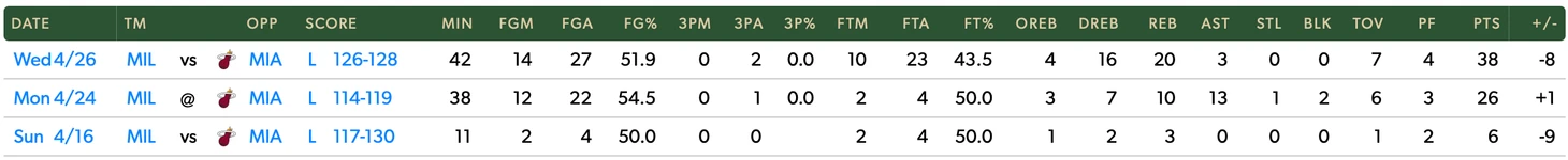 Сколько сыграл Яннис в серии с «Майами»