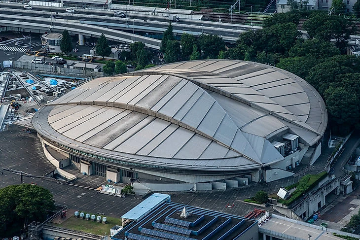 У дворца спорта – богатая история: его возвели для ЧМ-54 по вольной борьбе. Спустя 10 лет в нем проходили соревнования гимнастов в рамках Олимпиады. В 1991-м здание пережило реконструкцию: обрело футуристический вид с угадывающимися традиционными японскими мотивами.