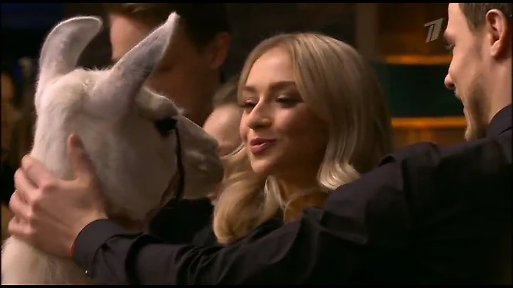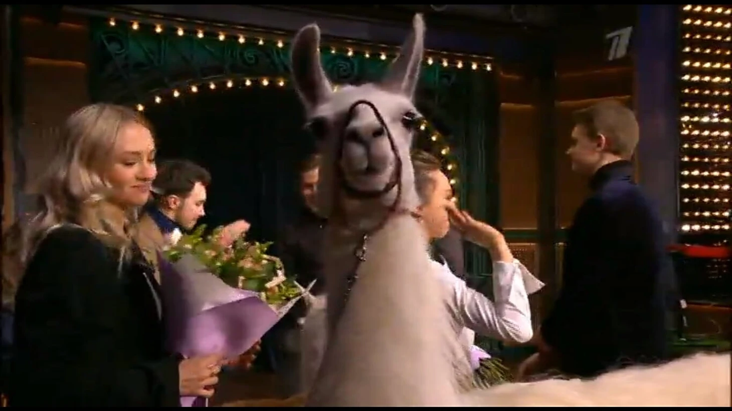 Где-то же у вас находятся эти мягкие игрушки. Мы подумали, почему вам, таким живым и веселым, дарят таких пусть и уютных, плюшевых, но неживых зверей. Поэтому прямо сейчас мы бы хотели сделать вам подарок от всей России… мы решили так: у нас три подарка (пушистых) – подарим двум парам и ребятам одиночникам один на двоих. Вы решите сами, как ими пользоваться. Выводите подарок – у нас для вас семья лам.