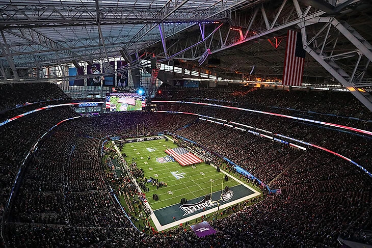 Рейтинги на телевидении – тоже запредельные. В прошлом году Супербоул посмотрели 98,3 млн человек. И это самый низки показатель за 11 лет. Рекорд принадлежит Супербоулу XLIX – в 2015-м он стал самой рейтинговой передачей за всю историю американского ТВ – 114,4 млн зрителей. Больше собрала только высадка на Луну 20 июля 1969 года, но трансляция шла по нескольким каналам и была международной – она не учитывается в официальном рейтинге. А вообще, 19 из топ-20 самых рейтинговых программ США – трансляции Супербоула. Разбавить его смог только финал сериала «МЭШ» (9-е место).