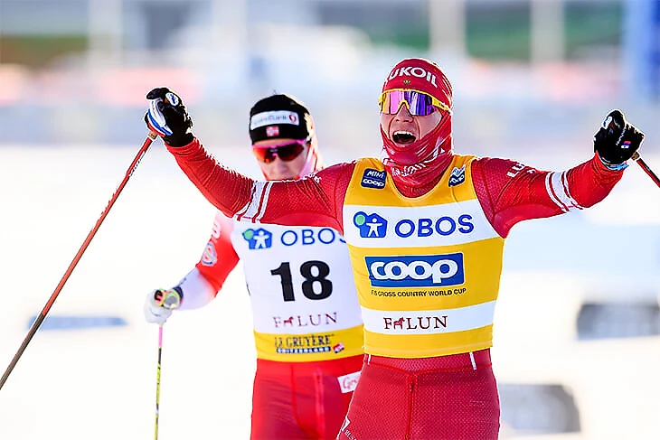 В той гонке первым финишировал Сергей Устюгов – он расчетливо ушел в отрыв незадолго до финиша, а вот Клэбо и Большунов бились за серебро до последнего метра.