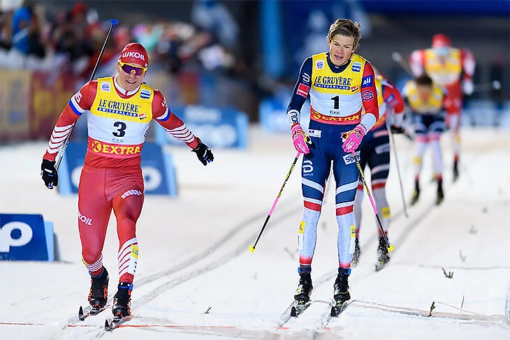 Большунов и Клэбо – лучшие гонщики современности, но на самом деле пересекались перед финишем не так часто: у Йоханнеса – профильного спринтера – преимущество.