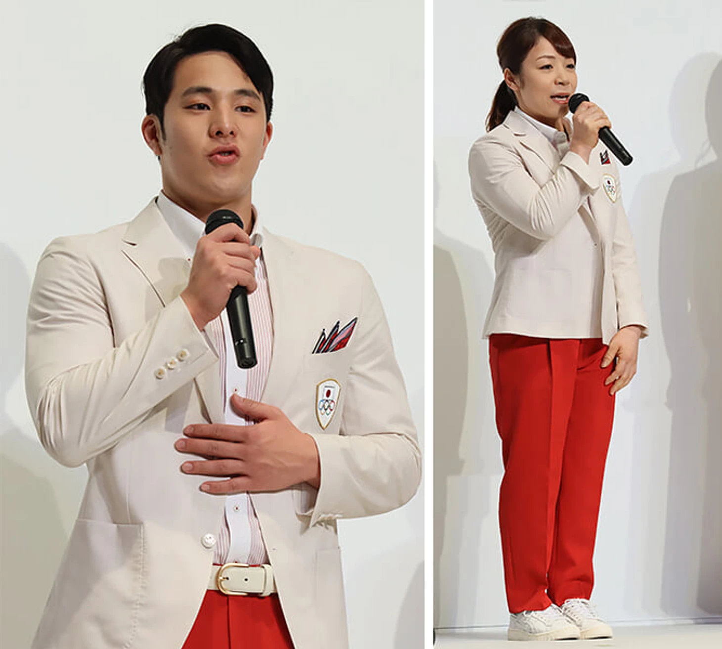 • У хозяев Олимпиады – трибьют форме Токио-1964. Тогда японцы вышли на церемонию открытия в красных пиджаках и белых брюках. Теперь верх костюма будет белым, а низ – красным. Красивая отсылка к первым Играм, прошедшим в городе 57 лет назад.