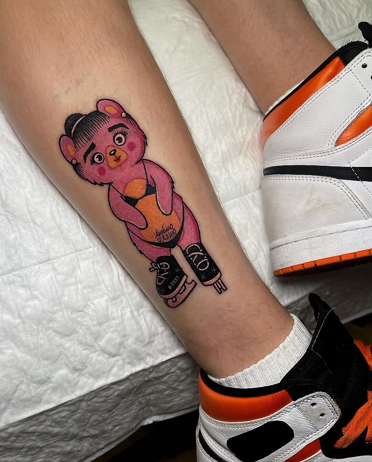 Кстати, Даня уже набил «ледовую» татуировку – розового медвежонка-фигуристку с подписью «Люблю Даню» на животе и «Жека» на ботинке конька: