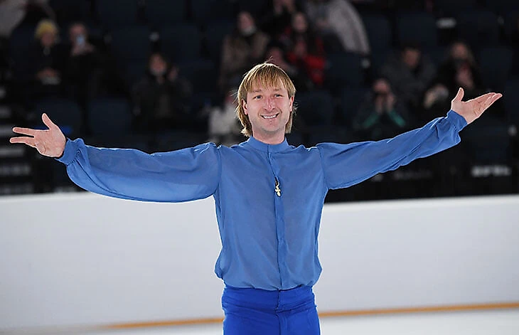 Затем программу под Первый концерт Чайковского показал двукратный чемпион Игр Евгений Плющенко. К нему присоединился еще один юный фигурист – Саша Плющенко (Гном Гномыч).