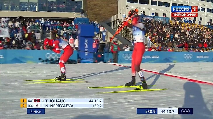 В финальный подъем она вытерпела и дальше разобралась со Штадлобер на финишной прямой. Есть первая медаль сборной России в Пекине! После финиша Наталья закрыла лицо руками и повалилась без сил на снег.