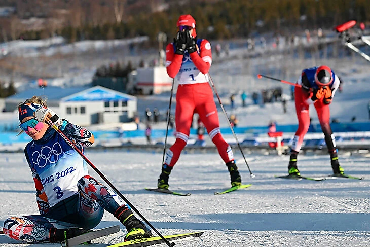 И если фавориты просеялись к 7,5 км – отметке, когда спортсменки меняли лыжи с классических на коньковые, то судьба золота решилась уже к 9 км. Норвежка Тереза Йохауг сделала невероятное ускорение, которое никто не поддержал. Остаток дистанции она добегала в одиночестве и лишь прибавляла. Только перед самым финишем Йохауг позволила себе расслабиться.