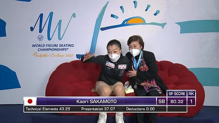Программа в порядке, получилось даже чуть лучше, чем на Олимпиаде: 80,32 против 79,84 – это личный рекорд. Впервые в карьере Сакамото преодолела гроссмейстерский порог в 80 баллов за короткую, таким до сих пор не может похвастаться даже Трусова.
