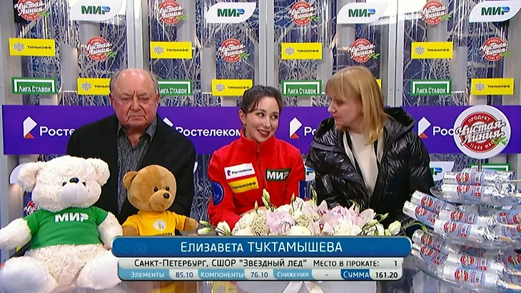 Оценка за технику сразу после выступления – 85,24. И если бы она осталась такой же, то Софья приблизилась бы к золоту. Но судьи пересмотрели элементы и снизили оценку на 0,7 балла. На итоговый результат это не повлияло – Туктамышева все равно впереди с запасом в 0,79.