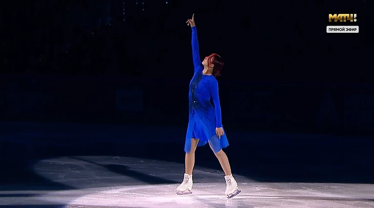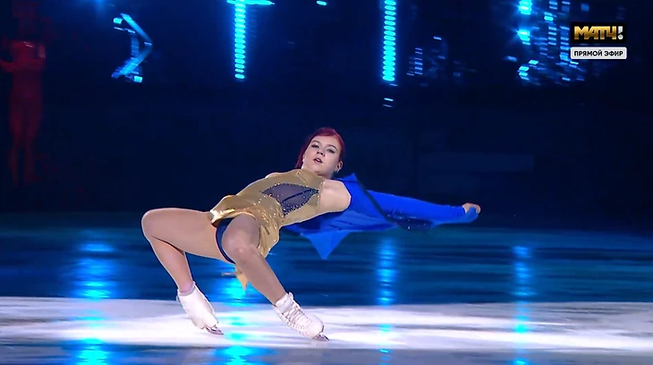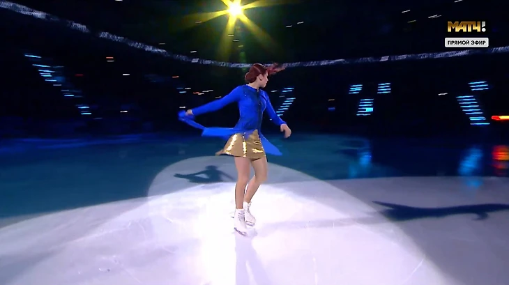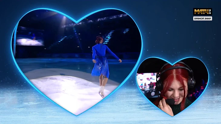И вот на фестивале «Влюбленные в фигурное катание» все увидели золотой номер Саши: переоделась на льду, подпевала, а потом комментировала собственное выступление в повторе.