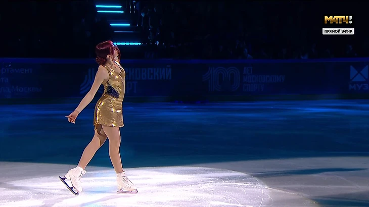 Накануне московского шоу Трусова в интервью Дмитрию Губерниеву заинтриговала: «У меня будет новый показательный номер. Мы его готовили к показательным на чемпионате России, но, к сожалению, я не смогла принять участие в нем, я заболела. Поэтому я его покажу сейчас на шоу».