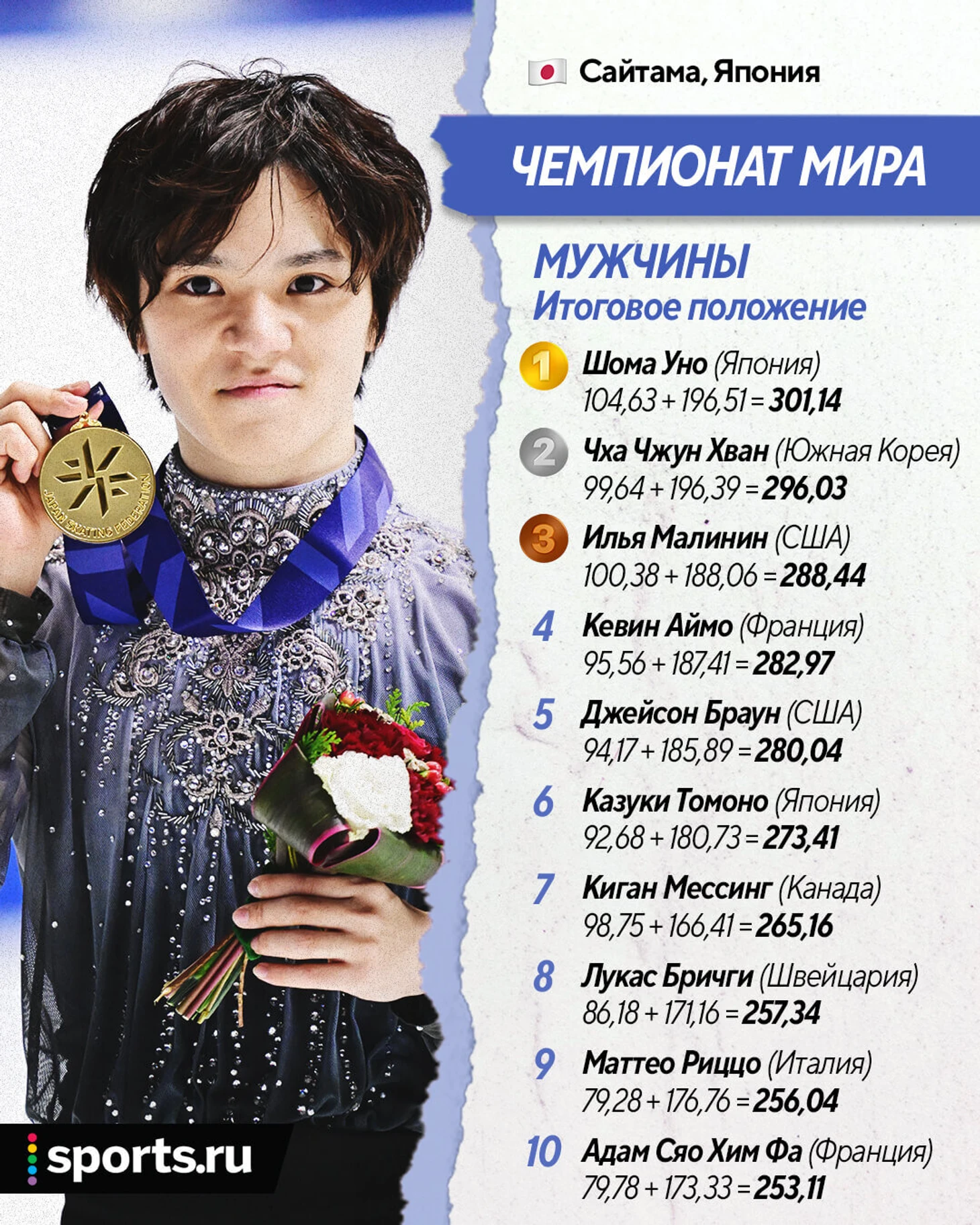 Для Уно это второе золото чемпионата мира подряд. Год назад он выиграл постолимпийский турнир в Монпелье, затем прошел сезон в статусе главной звезды мужской одиночки. А теперь есть победа и на домашнем льду.