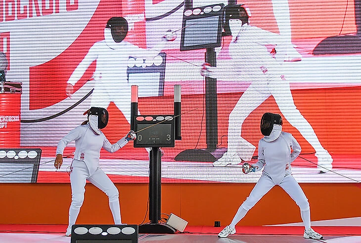 Показательный поединок с Азнавурян длился до 15 уколов и вышел очень упорным. При счете 14:14 Загитова дважды пропустила уколы, но соперница попросила их не засчитывать. Алина нанесла победный укол с третьей попытки, теперь у нее есть победа еще и в фехтовании.