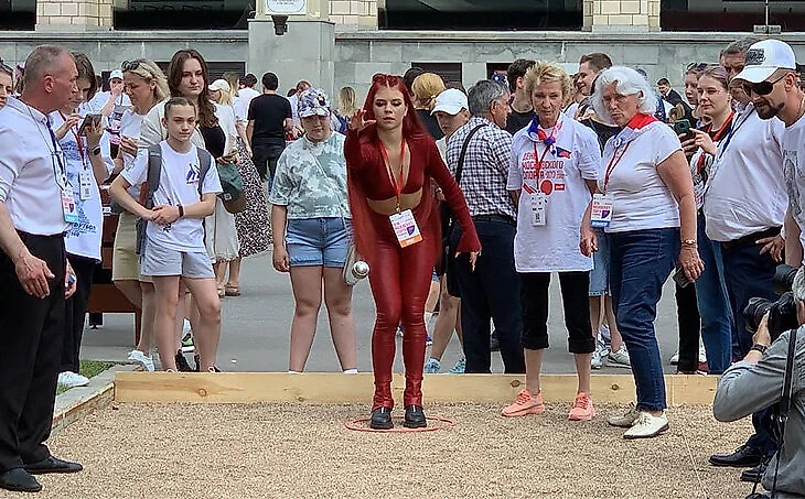 Потом Саша отправилась к зоне городских видов спорта, где ее ждал мастер-класс по петанку. Это популярный во Франции вид спорта, в котором участники бросают железные мячи, стараясь поставить их как можно ближе с маленьким деревянным шариком.