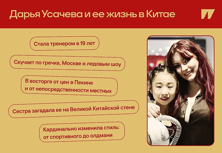 Но любовь к фигурному катанию не прошла: Усачева стала тренером. В 19 лет работает с учениками, сопровождает их на соревнованиях. И все это в Китае – Дарья уехала на работу в Пекин, подписан контракт, но срок разглашать нельзя.
