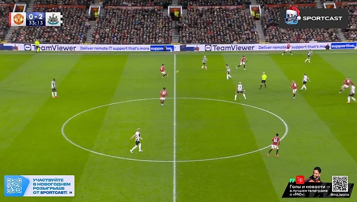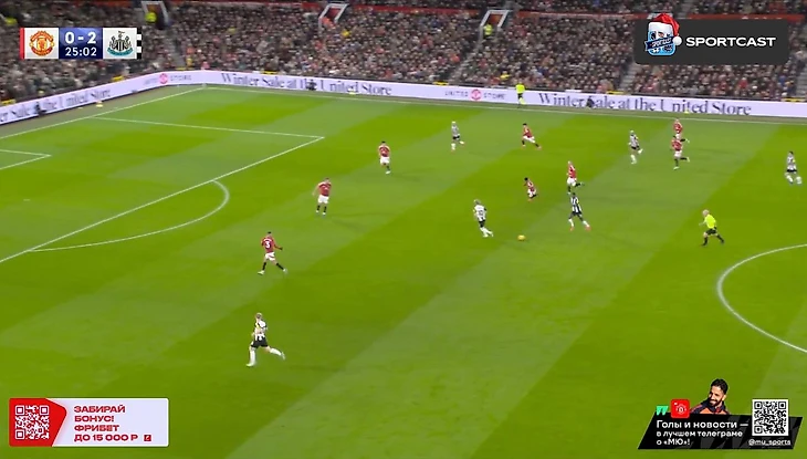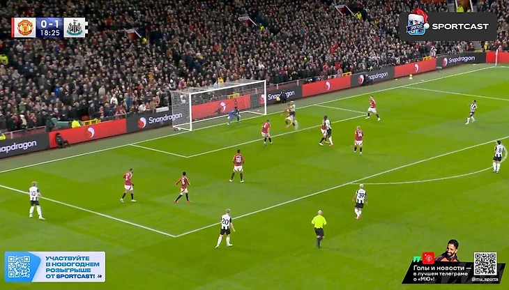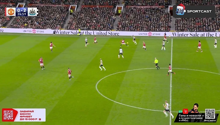 Для помощи Эриксену и Каземиро в оборону активно возвращался Амад – но и этим активно пользовался «Нюкасл», выводя Гордона в изоляцию с Мазрауи.