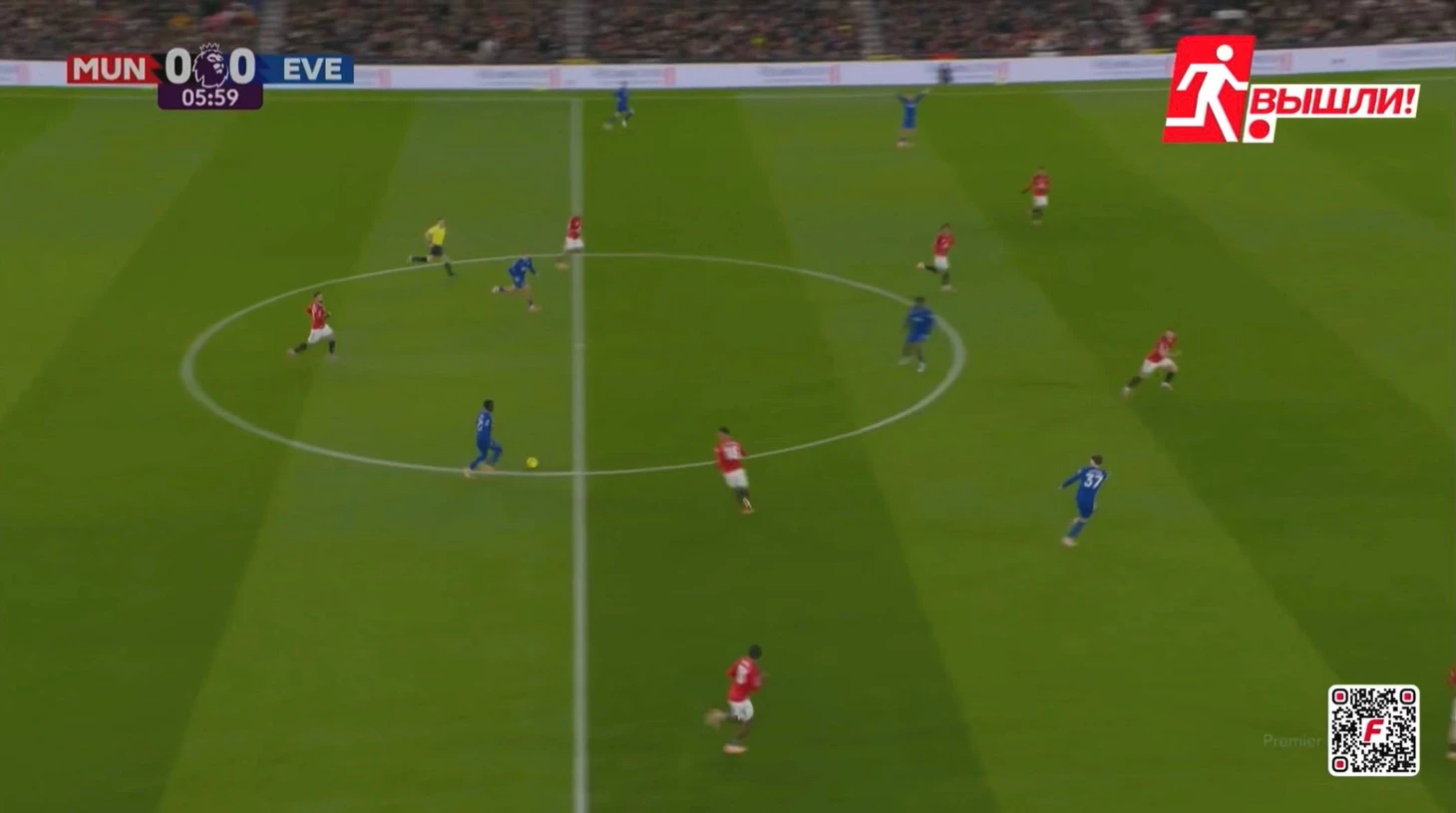 В билдапе Аморим все так же использует передвижение центрального защитника в опорную. Цель, как подробно объяснил Джонни Эванс в студии Sky Sports, не только в выманивании на двойку опорных игроков центральной оси соперника, а в создании запаса времени для голкипера, чтобы он смог подготовить передачу за спины полузащитникам оппонентов, найдя голову Шешко или другие части тела Бруну, Мбемо, Куньи или Маунта.