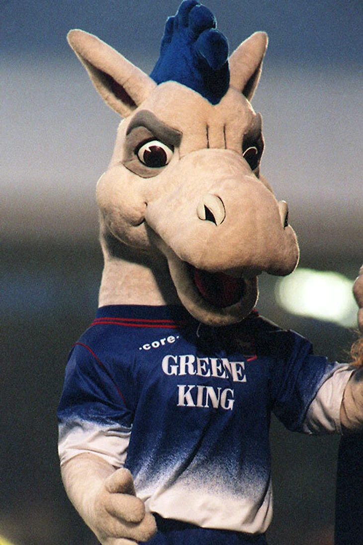 Однако в отличие от большинства других команд «Ипсвич» решил не мелочиться и назначил сразу двух маскотов: к каноничному Bluey, который тем не менее видимо ввиду отсутствия в природе синих лошадей (не считая болельщиков ЦСКА после очередного трофея – прим. автора) белого цвета, в какой-то момент был добавлен черномастный Crazee.