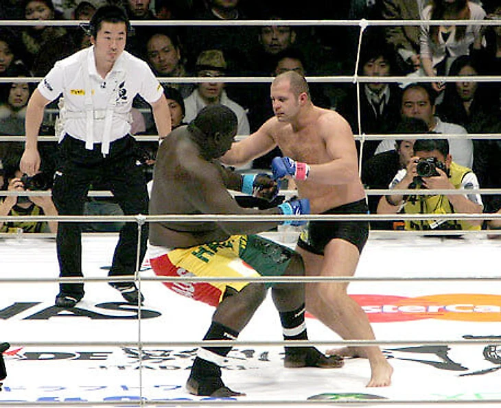 К тому времени Генри Сенторю успел подраться в Японии четыре раза. Он одолел новозеландца Мэтта Фоки, но уступил олимпийскому чемпиону по дзюдо Макото Такимото, британскому исполину Джеймсу Томпсону и еще одному чудовищу Pride – Гиганту Силве. Огромный бразилец в свое время завоевал бронзу Чемпионата Америки со сборной страны по баскетболу, но позже сосредоточился на выступлениях в рестлинге. Год он выступал в WWE, но большую известность нашел в Мексике, где был в команде с лилипутами.
