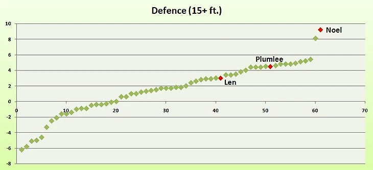 Если, по каким-то причинам, бросок категорически не дается бигмену, ему остается только путь к дуге. И вот здесь кроется то, что должно быть интересно нам для понимания ситуации с Ленем, Пламли и Ноэлем.