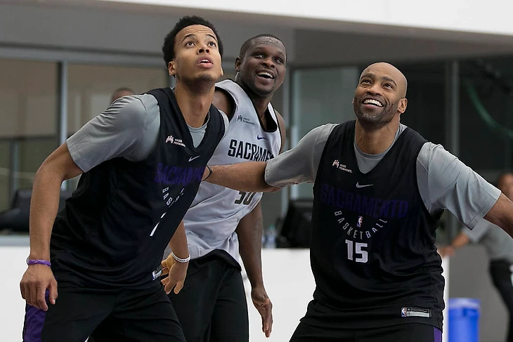 Богдан Богданович и Уилли Каули-Стайн – лучшее, что было у «Сакраменто» в прошлом сезоне, по моему скромному мнению. Эти двое заметно выделялись на фоне своих более молодых и менее опытных товарищей. Но что еще важнее, они образовали настоящую «связку» и на взаимодействие этой пары было приятно смотреть. Во многом, заслуга такого преображения кроется в персоне серба. Богдановичу потребовалось какое-то время на адаптацию к новым скоростям и непривычной разметке (что легко посмотреть по росту процента его реализации из-за дуги), но он заметно выделялся своим интеллектом и умением принимать правильные решения, особенно в перестраивающейся команде, где регулярные ошибки и неправильные решения считаются нормой. Богдан не показал потенциала звезды, но он продемонстрировал идеальный набор навыков для великолепного ролевого игрока – не проваливается в защите, надежен на дуге и может помочь в розыгрыше. Каули-Стайн парень попроще, надежный, трудолюбивый, типичная рабочая лошадка. Но даже он в какой-то момент начал отдавать весьма неожиданные для себя передачи на Богдановича, что напрямую свидетельствовало о растущем взаимопонимании этих двоих. Потому не удивительно, что именно Бог-Бог и УКС стали лидерами среди любых комбинаций их двух игроков в команде по количеству проведенного времени на паркете.