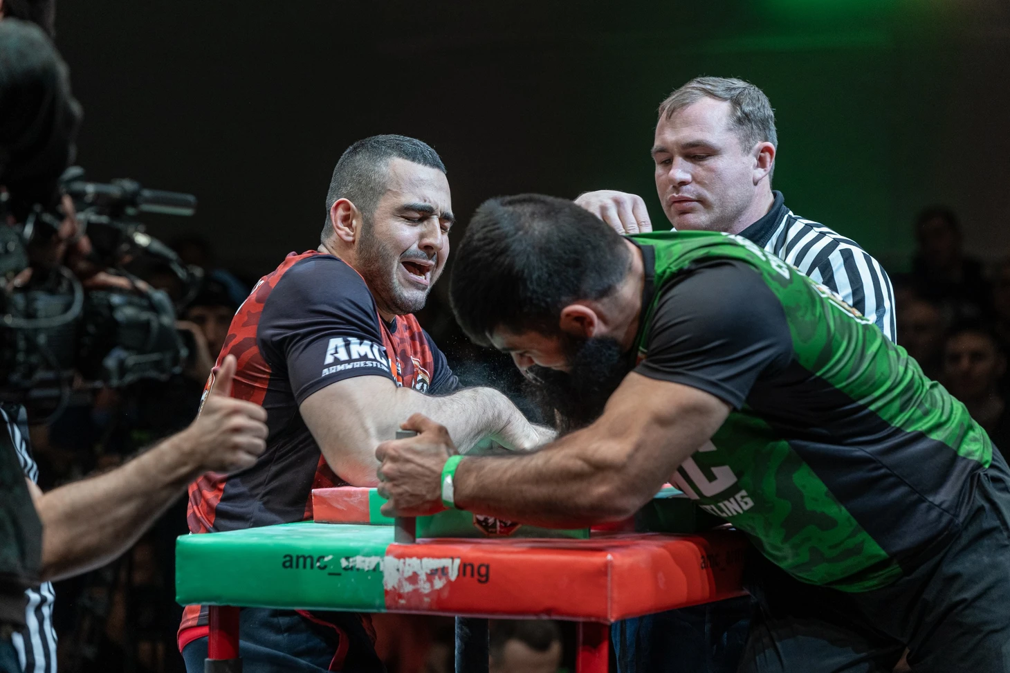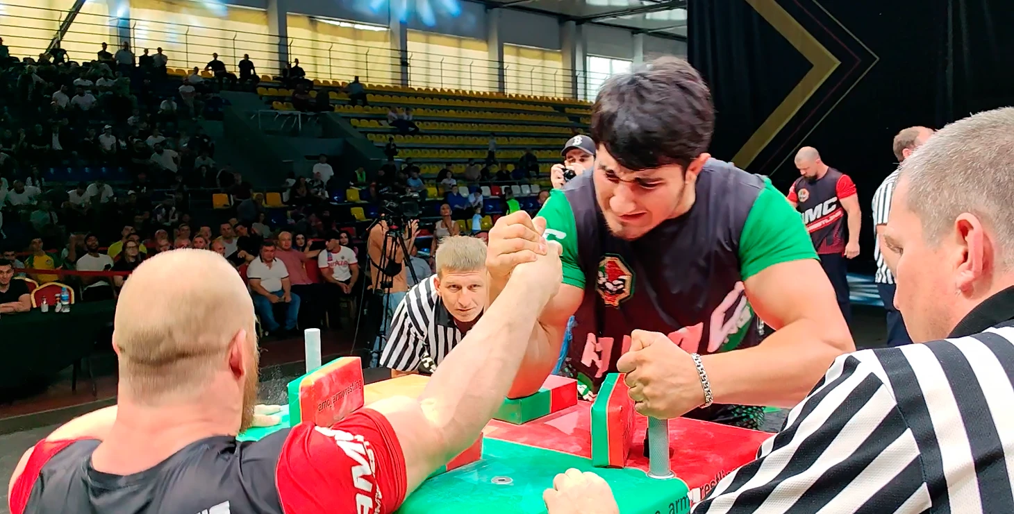 МОЛОДЫМ ВЕЗДЕ У НАС ДОРОГА! АМС#5 Если задуматься, то во Владикавказе Сергея Богословова от поражения, в его первом поединке с Арсеном Хачатряном, спас только фол! Да, мы знали, что Арсен хорош, но чтобы на столько - дать равный бой чемпиону! Хотя свои претензии на призовые места турнира Арсен обозначил еще на 2м АМС в Грозном, когда дал невероятно конкурентный бой Дзамболату Цориеву. Следующие два турнира рукоборец из Армении пропустил «по личным причинам» и вновь вышел на сцену АМС во Владикавказе. И как вышел! Равный бой с Богослововым, уверенная победа над Георгием Таутиевым. причем дважды - в предвариловке и полуфинале! В итоге Арсен поднялся на вторую ступень пьедестала!